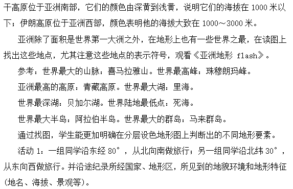 ②掌握亚洲地区地形特点,以及人文地貌。