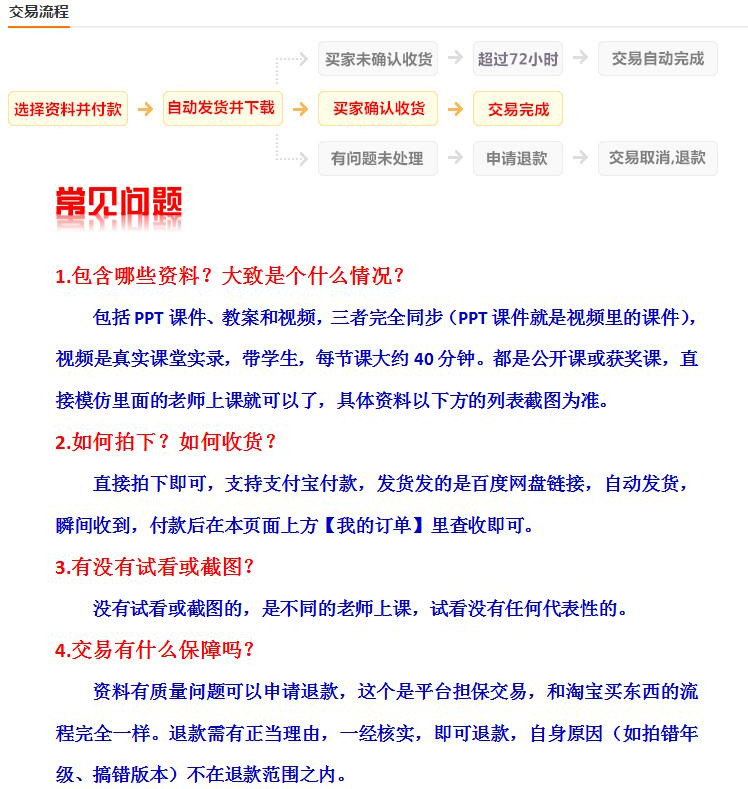 (1)版本信息不符,如:宝贝描述显示是人教版,结果收到的链接是其他版本的;